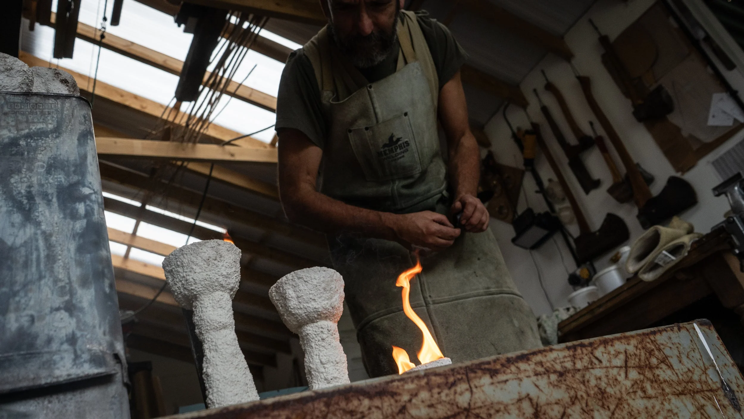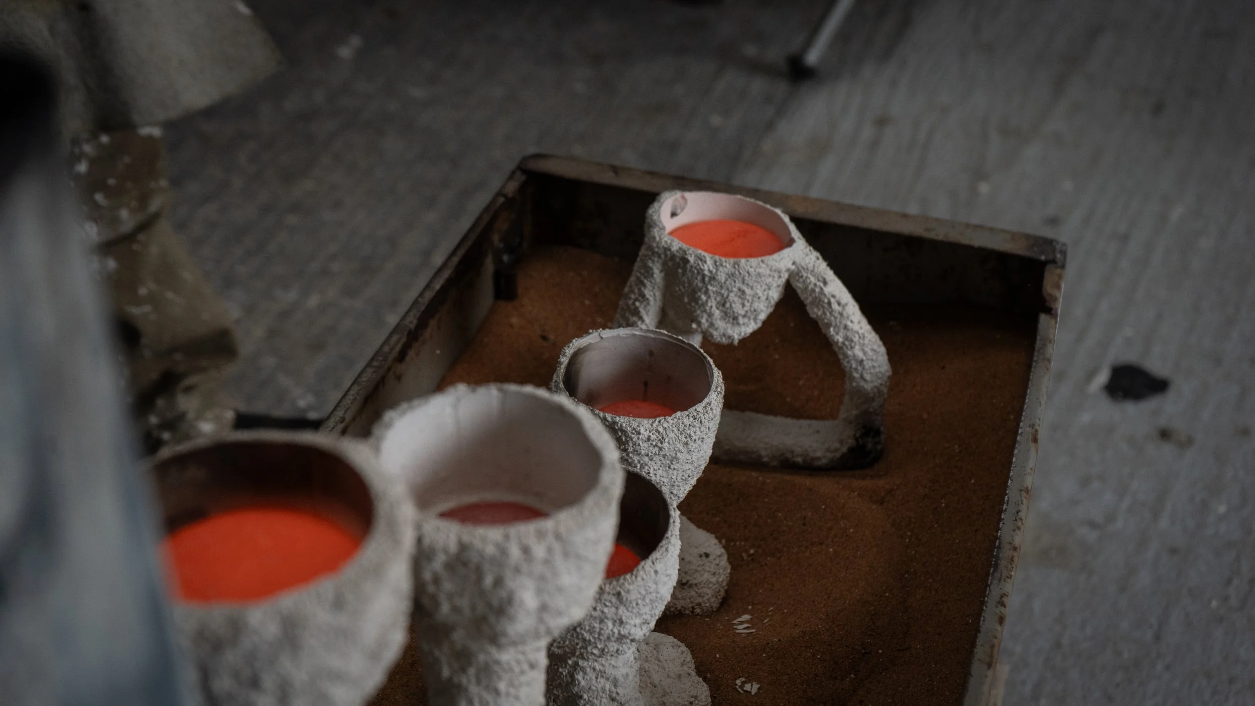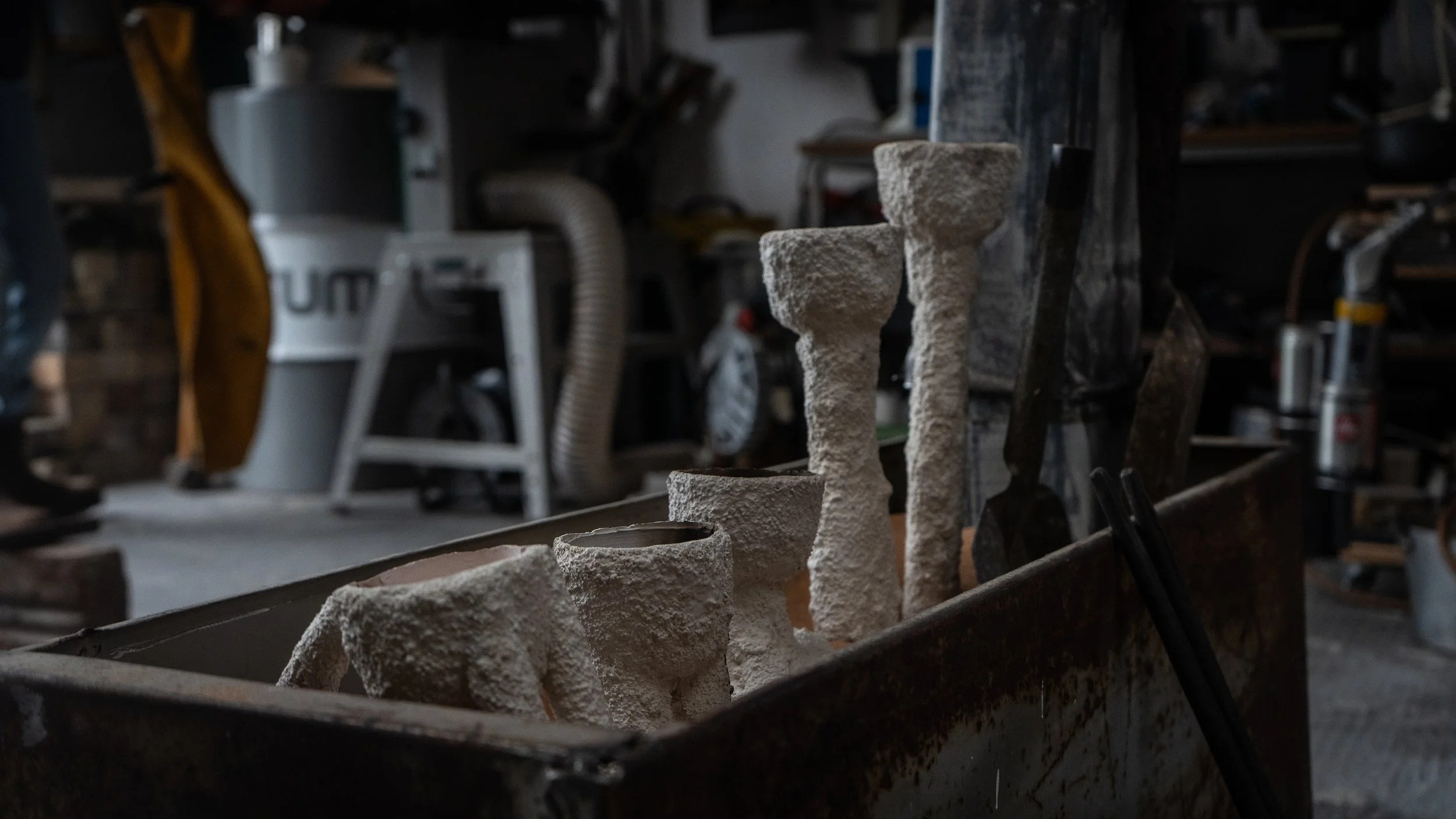 The cast forms are explorations following my intrigue with and admiration for the sensory wisdom and lost technologies of the distant past. I aim to echo the 'celt' and rite objects of early veiled history, to play with the forms of votive figures and to respond to my fascination with the earliest of intentional human works, the uprighted or standing stone.